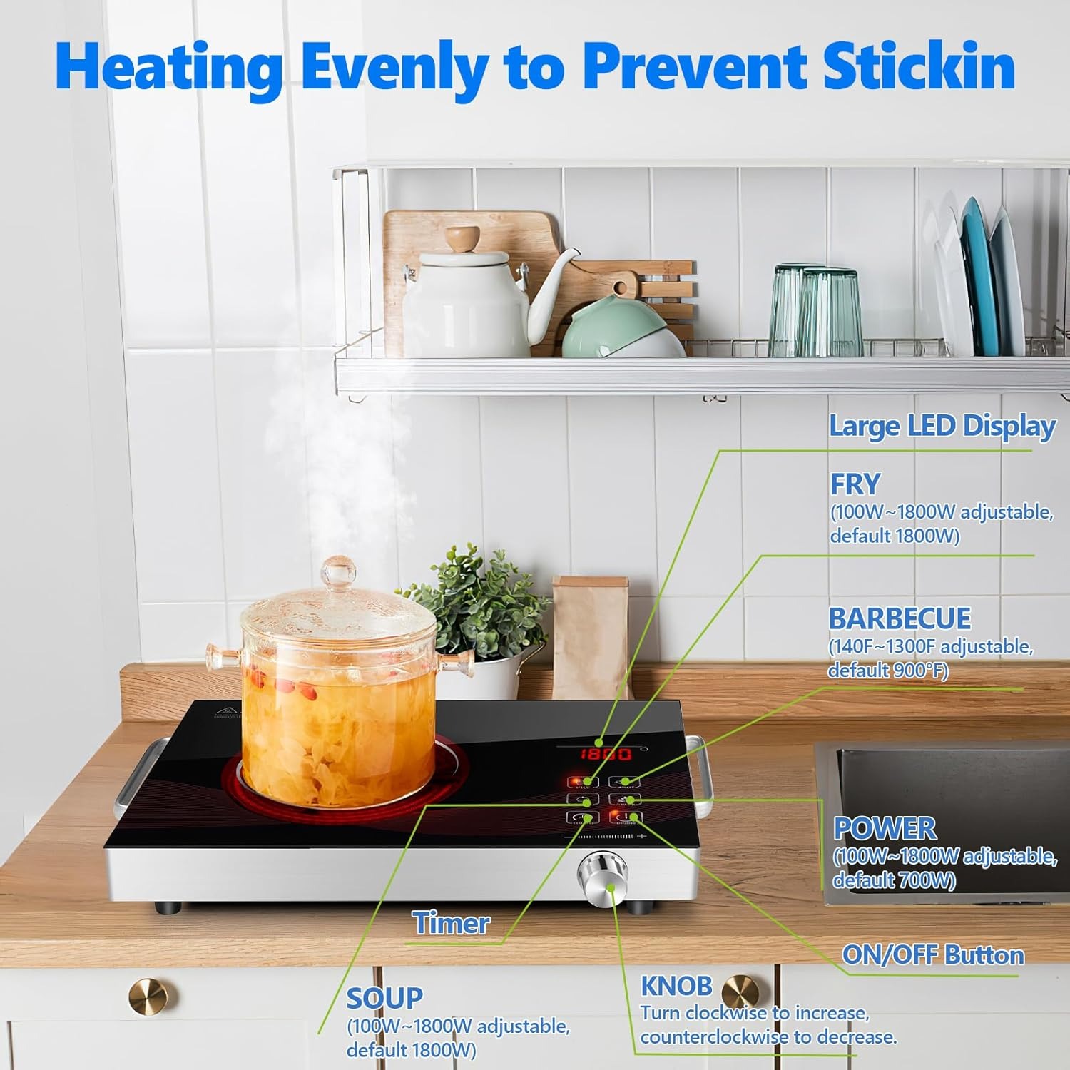 ⚡ Powerful 1800W Heating: Rapid and efficient heat for fast cooking.