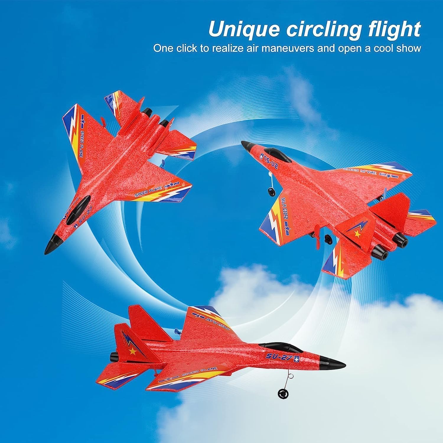 Rc Flying Plane, Model HW-33 Fighter Jet, Material EPP Foam, Colour Red, Blue and Yellow, For Kids, Remote Control Airplane 2.4Ghz Glider Rc Plane,2 Ch Remote Control Fighter Jet Easy to Fly,Epp Foam Rc Aircraft with Automatic Balance Gyro for Kids/Adults