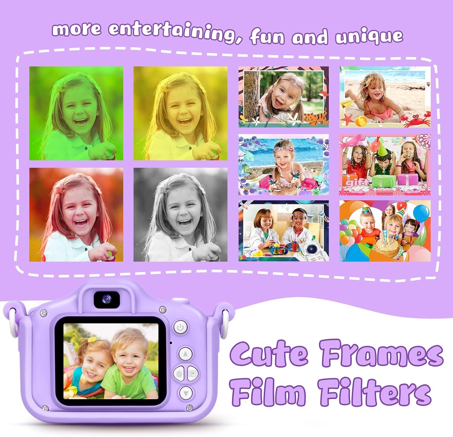 Designed with simple buttons, a lightweight body, and a comfortable grip, this camera is ideal for small hands. 📱✨ Kids can easily take photos, record videos, and even play mini games! 🎯🧩